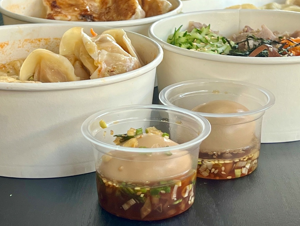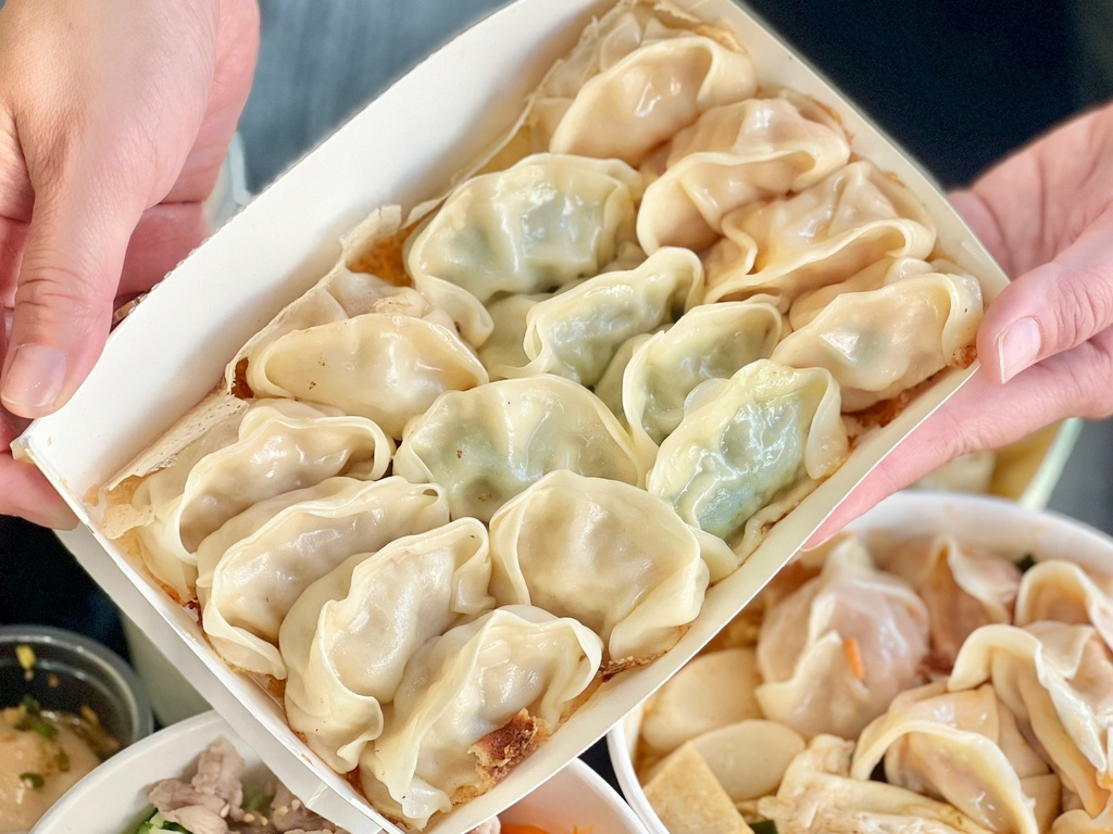 九鶴食堂店內販售的品項有煎餃、元寶煎餃、湯品、飲料還有韓式拌飯、韓國辛拉麵和韓式小菜,特別以圓滾滾的元寶煎餃為人氣商品!