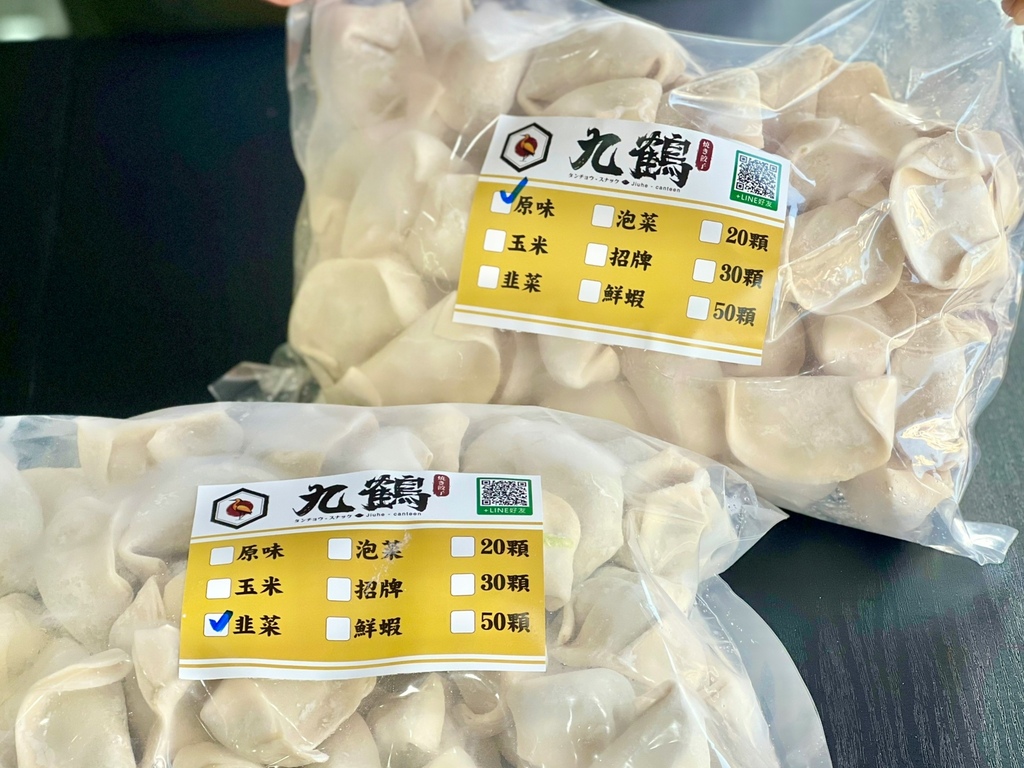 九鶴食堂還有販售生水餃,生水餃有6種口味原味、招牌、玉米、韭菜、泡菜、招牌、鮮蝦,分別有20顆、30顆、50顆裝。
